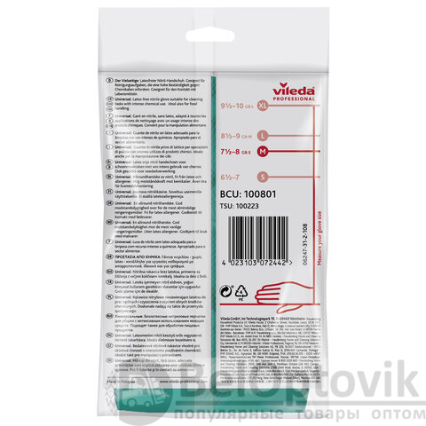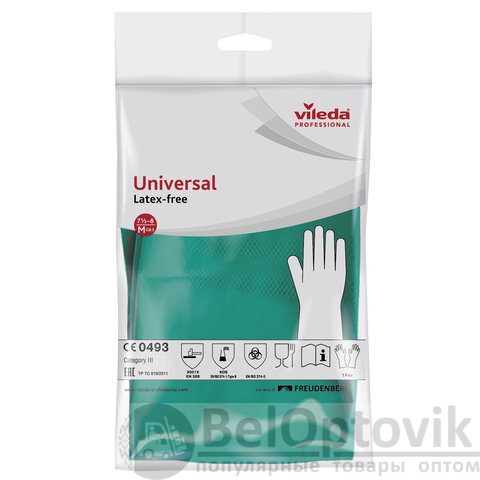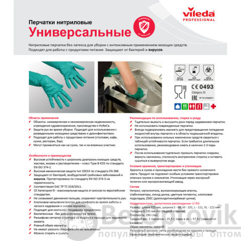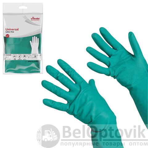 Перчатки МНОГОРАЗОВЫЕ нитриловые VILEDA универсальные, антиаллергенные, размер M (средний), зеленые, вес 64 г, 100801