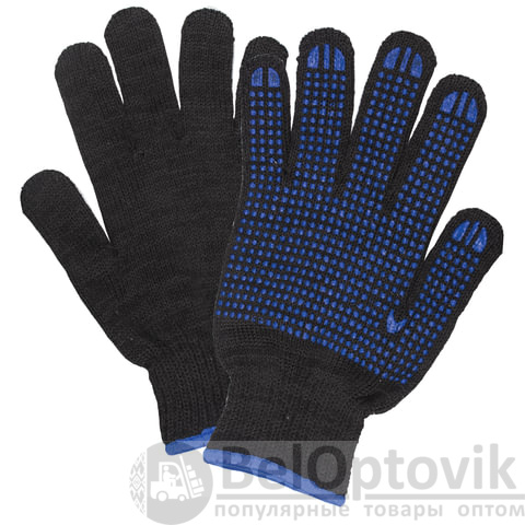Изготовлены из хлопчатобумажной пряжи плотностью 233 текс с покрытием из поливинилхлорида с нанесением рисунка на внутреннюю сторону перчатки. Покрытие ПВХ помогает обеспечить плотный захват и предотвращает соскальзывание детали. Резинки на манжетах обеспечивают плотное прилегание перчатки к руке. Перчатки черного цвета имеют 7 класс вязки. Вес пары - 70 г. Индивидуальная упаковка.