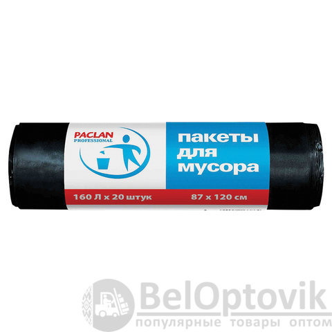 Мешки для мусора 160 л, черные, в рулоне 20 шт., ПВД, 30 мкм, 87х120 см, PACLAN "Professional", 1338607