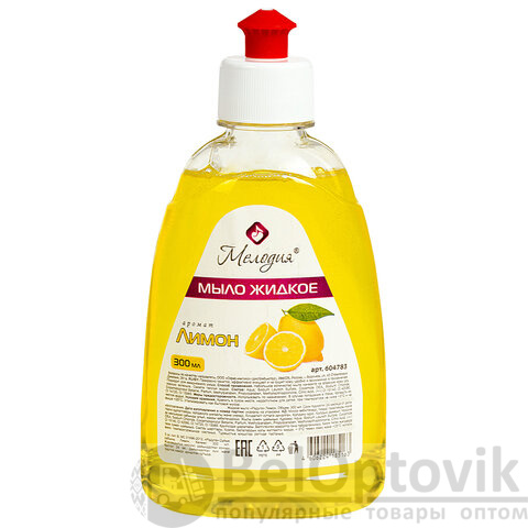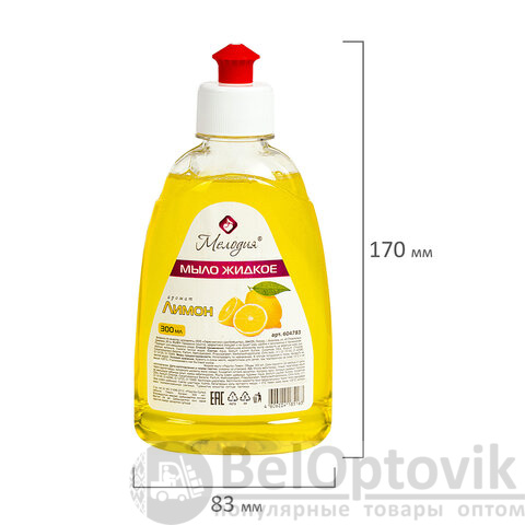 Мыло жидкое 300 мл, МЕЛОДИЯ "Лимон", пуш-пул, 604783