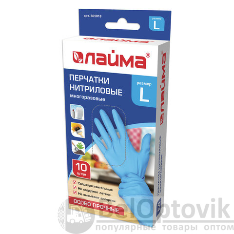 Перчатки LAIMA большого размера L обладают более сильной стойкостью к агрессивным химическим веществам, в том числе кислотам и щелочам по сравнению с другими перчатками. Являются особо прочными, отличаются повышенной устойчивостью к порезам и проколам, а также высокой эластичностью, которая обеспечивает изделиям отличное прилегание и соответствие форме руки пользователя, а также высокую тактильную чувствительность. Данные перчатки обладают еще одной особенностью - механической памятью, благодаря которой форма сохраняется после снятия перчатки с кисти. Закатанный край манжеты защищает от проникновения капель воды в перчатку. Подходят для многоразового использования. Не вызывают аллергию. 5 пар в упаковке. Поставляются в картонном диспенсере с европодвесом.