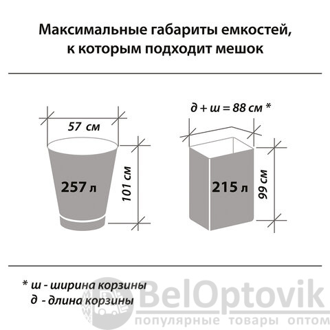 Изготовлены из полиэтилена высокого давления (ПВД) плотностью 50 микрон и имеют объем 240 литров. Размер мешка - 90х140 см (±5%). Поставляются в рулоне по 10 штук. Преимуществами данных мешков для мусора являются: устойчивость к разрыву, высокая прочность, большой объем и грузоподъемность.