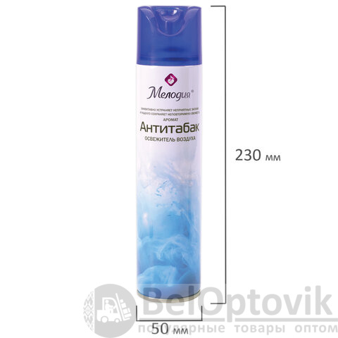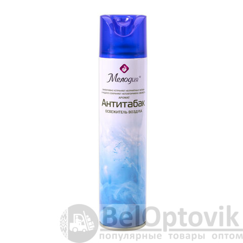 Освежитель воздуха МЕЛОДИЯ "Антитабак" быстро и эффективно устраняет неприятные запахи и освежает воздух в жилых и бытовых помещениях. Имеет приятный стойкий аромат, который надолго наполнит помещение свежестью.