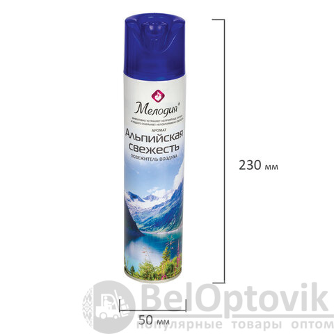 Освежитель воздуха МЕЛОДИЯ "Альпийская свежесть" быстро и эффективно устраняет неприятные запахи и освежает воздух в жилых и бытовых помещениях. Имеет приятный стойкий аромат, который надолго наполнит помещение свежестью.