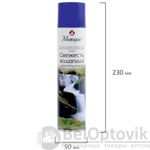 Освежитель воздуха МЕЛОДИЯ "Свежесть водопада" быстро и эффективно устраняет неприятные запахи и освежает воздух в жилых и бытовых помещениях. Имеет приятный стойкий аромат, который надолго наполнит помещение свежестью.