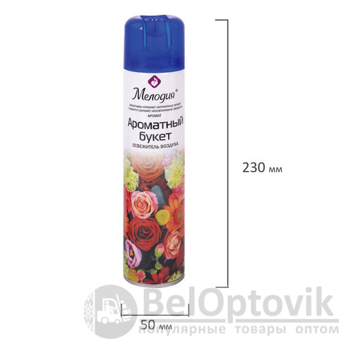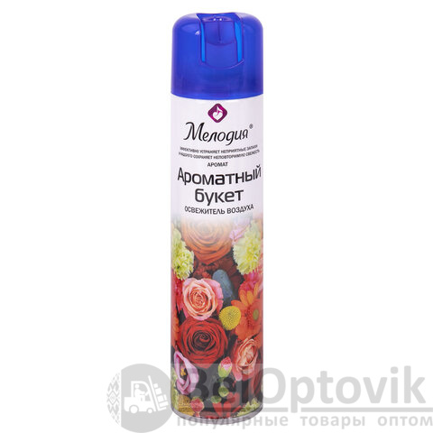 Освежитель воздуха МЕЛОДИЯ "Ароматный букет" быстро и эффективно устраняет неприятные запахи и освежает воздух в жилых и бытовых помещениях. Имеет приятный стойкий аромат, который надолго наполнит помещение свежестью.