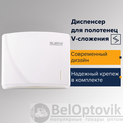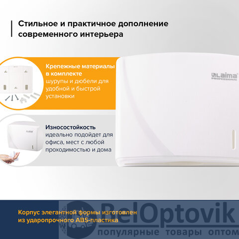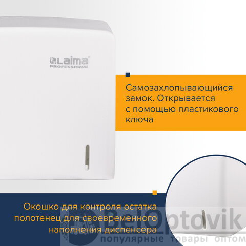 Диспенсер для полотенец LAIMA PROFESSIONAL ORIGINAL (Система H3), V-сложения, белый, ABS, 605761