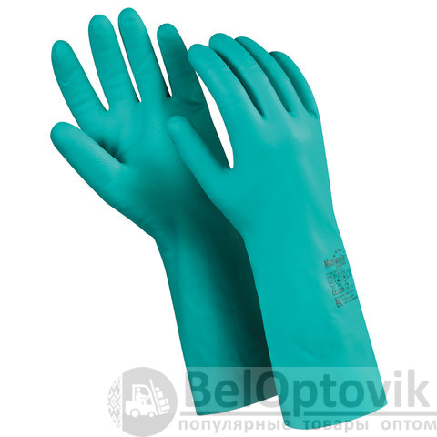 Перчатки нитриловые MANIPULA "Дизель", хлопчатобумажное напыление, размер 8 (M), зеленые, N-F-06