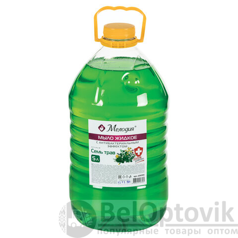 Мыло жидкое с антибактериальным эффектом 5 л МЕЛОДИЯ "Семь трав", ПЭТ, 606986