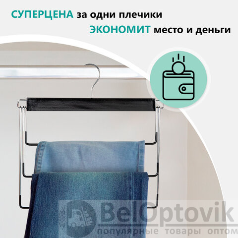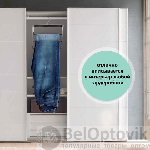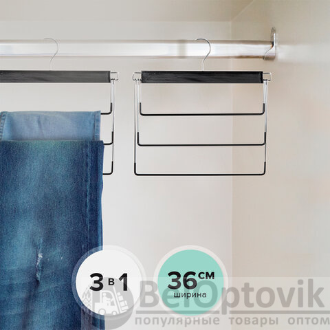 Данная вешалка BRABIX с ПВХ-покрытием идеальна для брюк и джинс. Имеет 3 уровня. Обеспечивает удобство и экономию пространства Вашего шкафа или гардеробной. Идеальна для небольших шкафов, фактически заменяет 3 вешалки, но при этом занимает меньший объем.