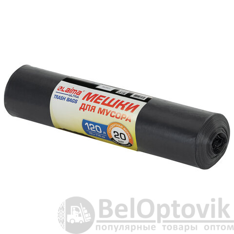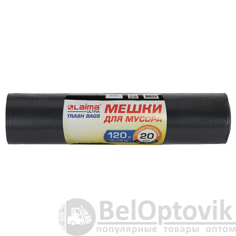 Мешки для мусора LAIMA "ULTRA" 120 л, черные, рулон 20 шт., сверхпрочные, ПСД 60 мкм, 70х110 см, 607697