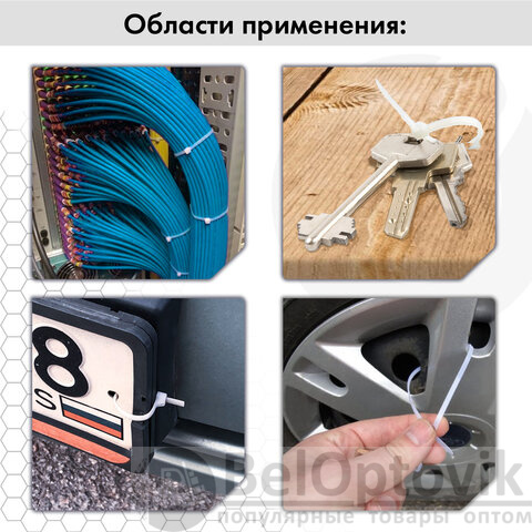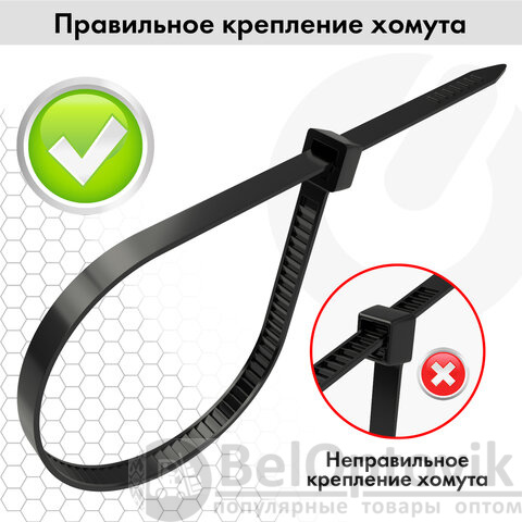 В нашем ассортименте представлены стяжки (хомуты) различные по длине (от 100 до 300 мм) и ширине (2,5 и 3.6 мм). Также в наличии имеются стяжки (хомуты) белые, черные и цветные.