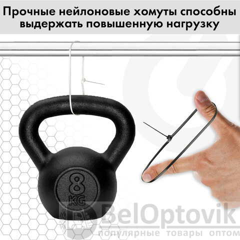 Стяжки (хомуты) представляют собой тонкую, эластичную полоску из нейлона высокой прочности (PA 6.6) с замком на конце. Благодаря применению качественного нейлона стяжки (хомуты) сочетают высокую прочность и пластичность, стойкость к перепадам температурного режима и уровня влажности воздуха.
