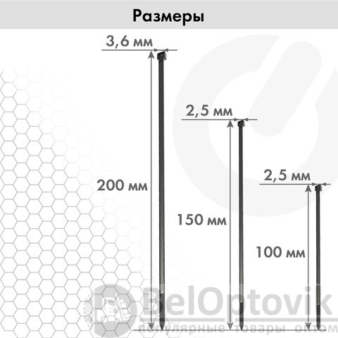 - Размер (ШхД): 2,5х100; 2,5х150; 3,6х200 мм