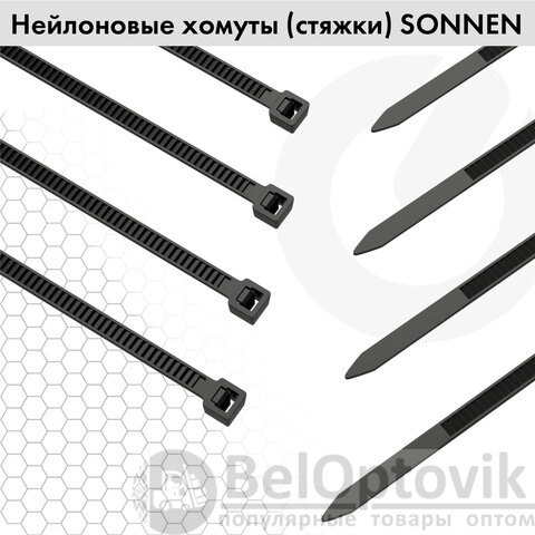 Стяжки (хомуты) нейлоновые SONNEN используются при проведении электромонтажных работ для крепления кабелей, проводов и других предметов к несущей поверхности или для соединения между собой. Такие стяжки также используются для бытовых и хозяйственных нужд.