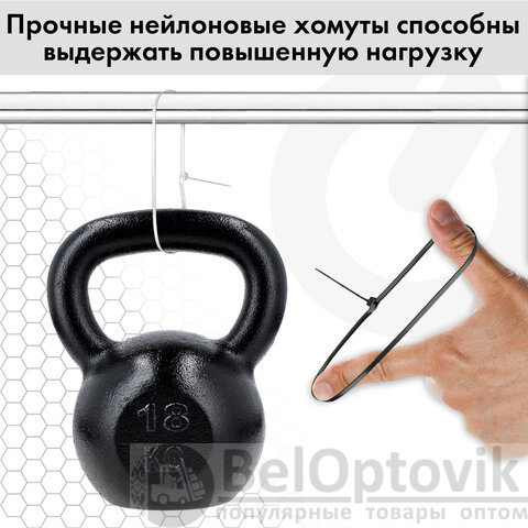 Стяжки (хомуты) представляют собой тонкую, эластичную полоску из нейлона высокой прочности (PA 6.6) с замком на конце. Благодаря применению качественного нейлона стяжки (хомуты) сочетают высокую прочность и пластичность, стойкость к перепадам температурного режима и уровня влажности воздуха.