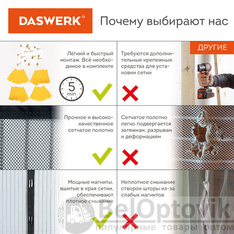 Москитная сетка на магнитах DASWERK – эффективное средство защиты от пуха, пыли и насекомых.