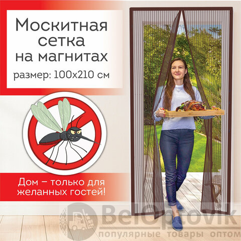 Москитная сетка дверная на магнитах 100х210 см, антимоскитная, коричневая, DASWERK, 607986