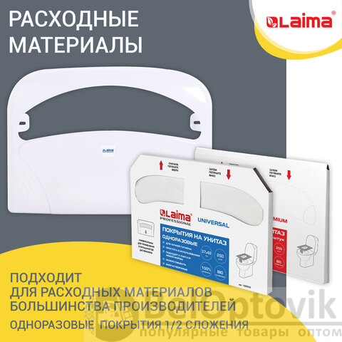 Диспенсер для покрытий на унитаз LAIMA PROFESSIONAL подходит для использования в туалетных комнатах офисов, торговых центров, аэропортов, вокзалов, ресторанов и т.д.