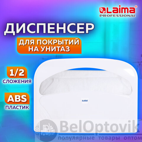 Диспенсер для покрытий на унитаз LAIMA PROFESSIONAL LSA (Система V1) 1/2 сложения, белый, ABS-пластик, 607993, 3460-0