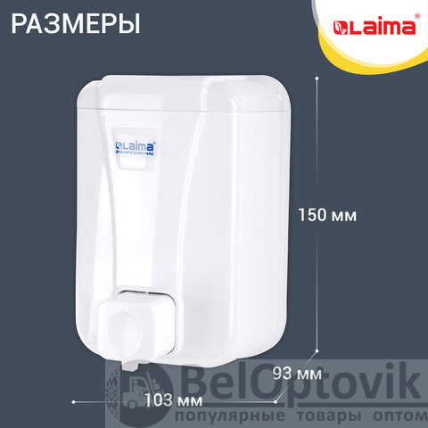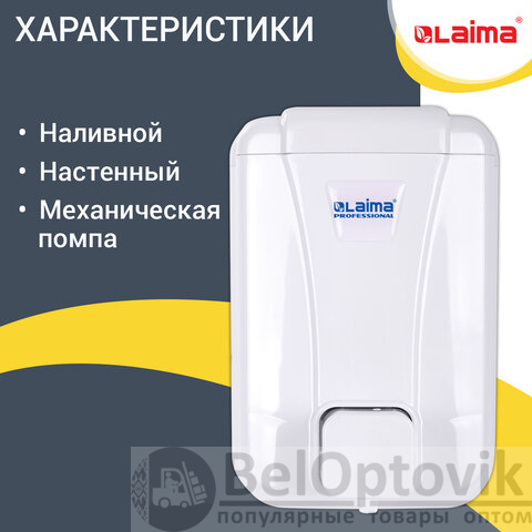 Дозатор для жидкого мыла LAIMA PROFESSIONAL LSA, НАЛИВНОЙ, объем 0,5 л, цвет белый, 607994, 3420-0
