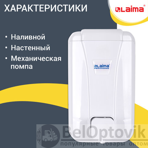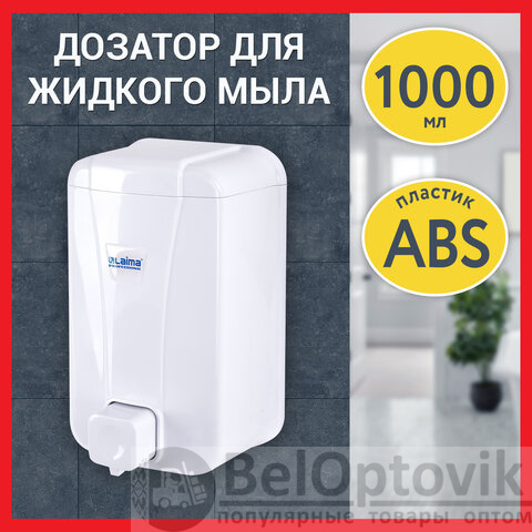 Дозатор для жидкого мыла LAIMA PROFESSIONAL LSA, НАЛИВНОЙ, объем 1 л, цвет белый, 607995, 3430-0