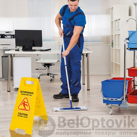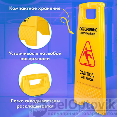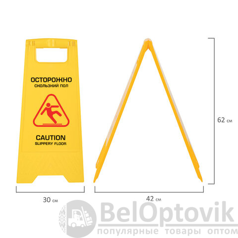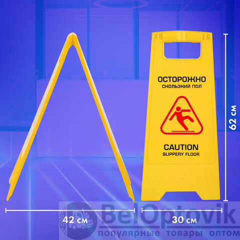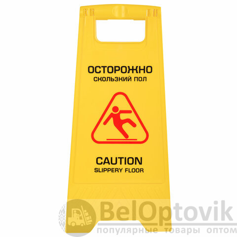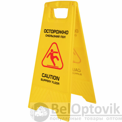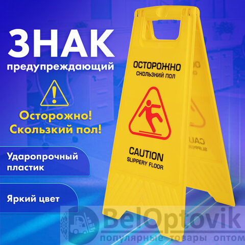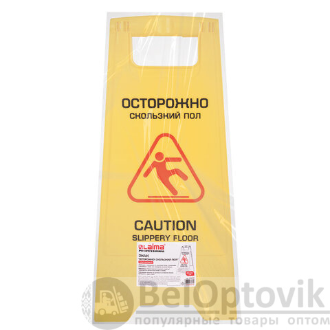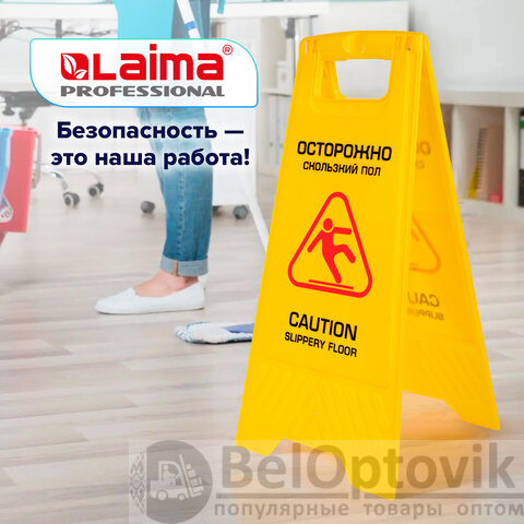 Знак предупреждающий "Осторожно! Скользкий пол!" LAIMA PROFESSIONAL предназначен для привлечения внимания и обеспечения безопасности в местах массового скопления людей. Выставляется при проведении влажной уборки.