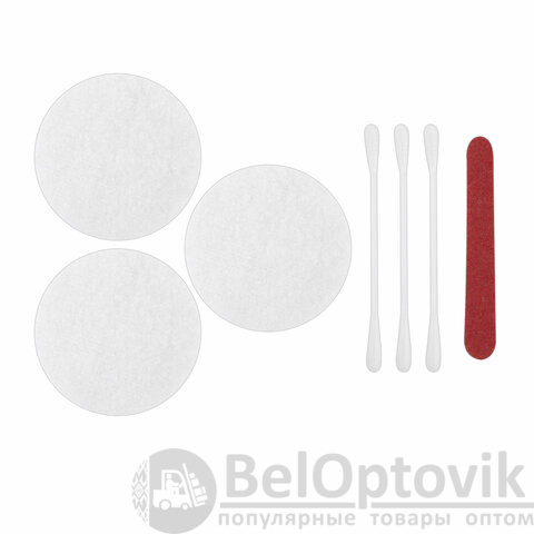 Косметический набор включает в себя: ватные диски, косметические палочки, пилочка для ногтей.