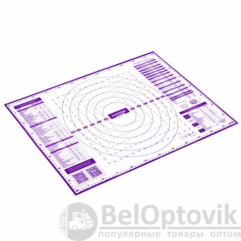 В первую очередь коврик силиконовый предназначен для замешивания и раскатки теста, но готовить на нём можно любые блюда. Изготовленный из безопасного пищевого силикона коврик размером 40х60 см не скользит по столу, а тесто любой консистенции к коврику не прилипает. Для удобства на силиконовый коврик для теста нанесена вспомогательная разметка и полезная кулинарная информация. Также набор включает пластиковый нож для теста (24 см).