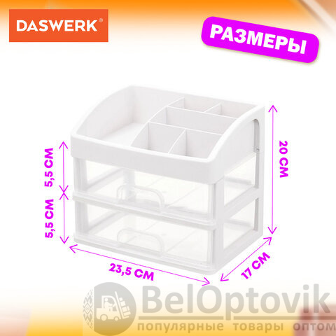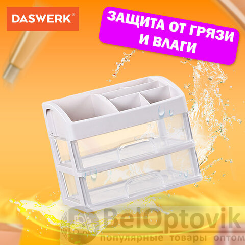 Универсальный органайзер DASWERK предназначен для хранения канцелярских товаров, украшений, маникюрных инструментов, кистей, бижутерии, духов, аксессуаров, косметики и многого другого.