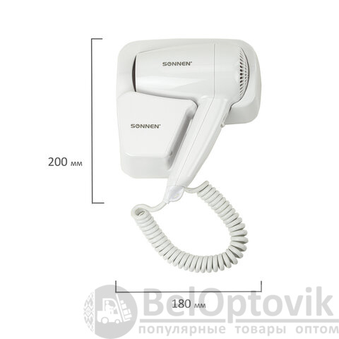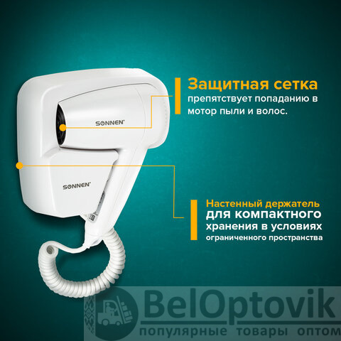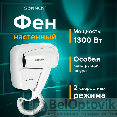 Фен для волос настенный SONNEN HD-2101 ULTRA PLUS, 1300 Вт, 2 скорости, белый, 608481