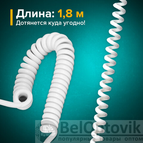 В комплект входит настенный держатель, способствующий компактному хранению в условиях крайне ограниченного пространства. Длина кабеля составляет 0,9 м, благодаря его спиральной конструкции он устойчив к спутыванию и провисанию, что повышает удобство эксплуатации фена.