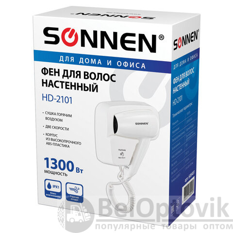 Фен для волос SONNEN HD-2101 предназначен для сушки волос потоком теплого воздуха. Подходит для установки в гостиницах, бассейнах, фитнес-клубах, в раздевалках складских и производственных комплексов. Также может использоваться в личных ванных комнатах.