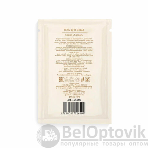 Гель для душа одноразовый 10 мл, КОМПЛЕКТ 500 шт., GRASS SARGAN, саше, флоупак, 125209