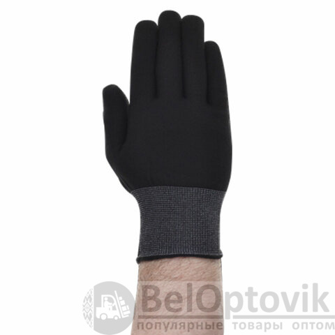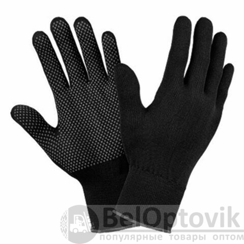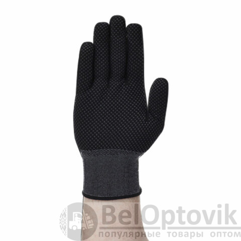 Нейлоновые перчатки черного цвета с нанесённой мягкой и цепкой ПВХ микроточкой.
