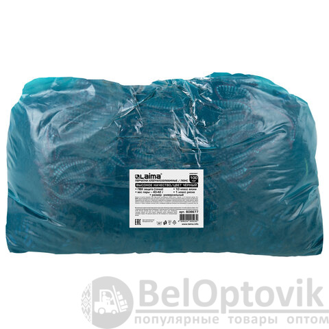 Перчатки хлопчатобумажные, КОМПЛЕКТ 100 ПАР, 10 класс, 40-42 г, 116 текс, ПВХ-точка, LAIMA ЛЮКС ЧЕРНЫЕ, 608677
