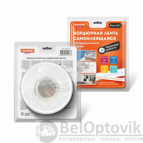 Бордюрная лента DASWERK используется в бытовых условиях для герметизации стыков и швов между раковиной, ванной, столешницами и прилегающими к ним стенами.