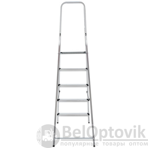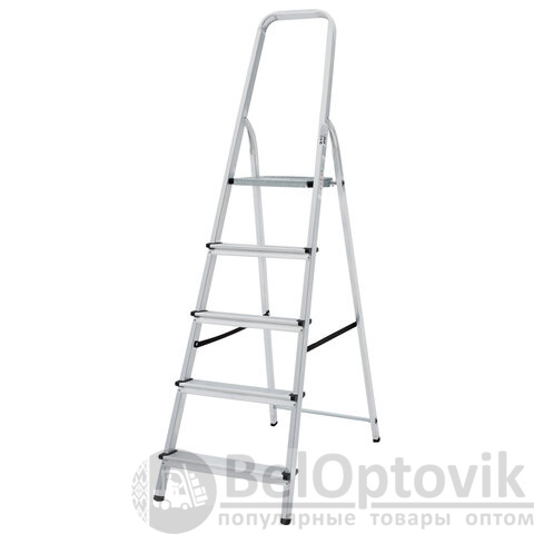 Стремянка алюминиевая 5 ступеней, высота площадки 1,04м, дуга безопасности 0,6м, площадка 26х26см, до 150кг, вес 4кг, НОВАЯ ВЫСОТА, 1110105