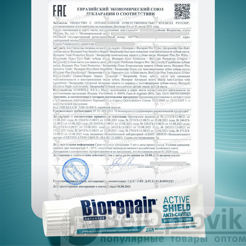 Зубная паста 75 мл BIOREPAIR "Pro active shield", активная защита зубов, ИТАЛИЯ, GA1766300