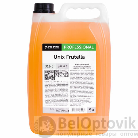 Ароматизатор освежитель воздуха, 5 л, PRO-BRITE UNIX Frutella, бактерицидный, жидкость, 311-5