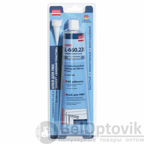 Клей диффузионный 200 г, COSMOFEN PLUS-S БЕЛЫЙ, высокопрочный, жидкий, ПВХ, тюбик БЛИСТЕР, SL 660.220 BL
