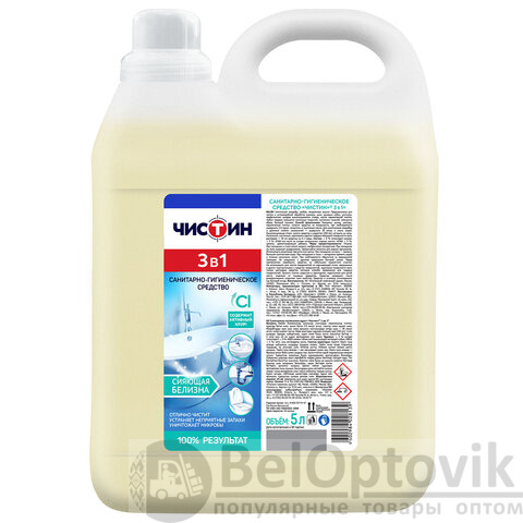 Средство для уборки туалета, 5 л, ЧИСТИН, 3 в 1, содержит активный хлор, 24957