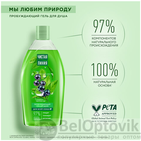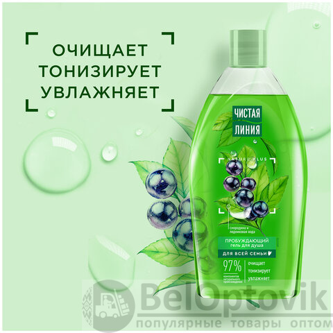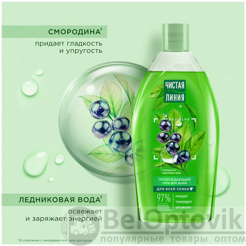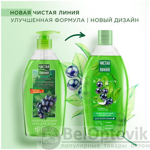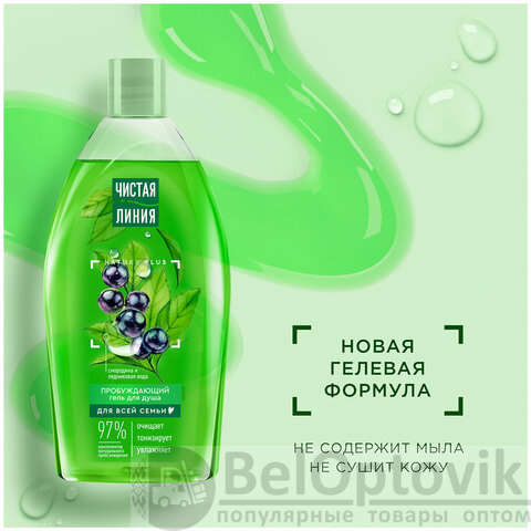 Гель для душа ЧИСТАЯ ЛИНИЯ "Смородина и ледниковая вода" очищает, питает и смягчает кожу, а также повышает ее упругость.