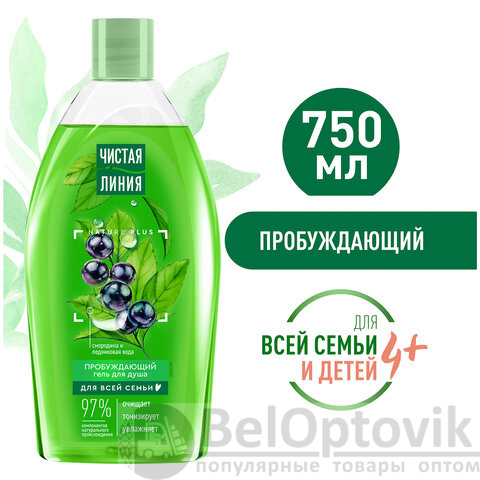 Гель для душа 750 мл, ЧИСТАЯ ЛИНИЯ "Смородина и ледниковая вода", на натуральной основе