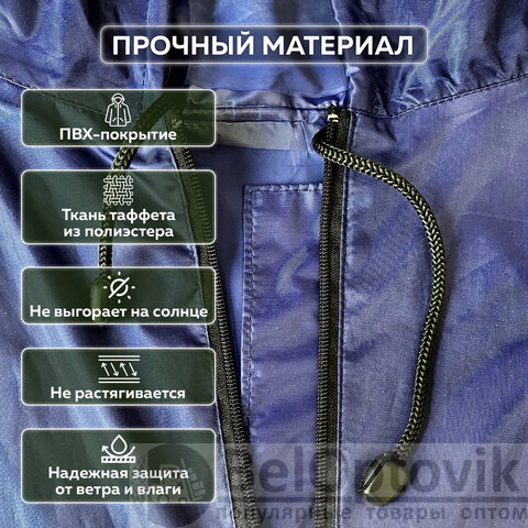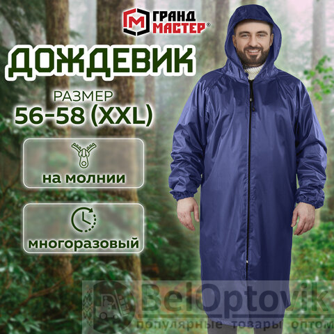Дождевик-плащ синий на молнии многоразовый с ПВХ-покрытием, размер 56-58 (XXL), рост 170-176, ГРАНДМАСТЕР, 610867