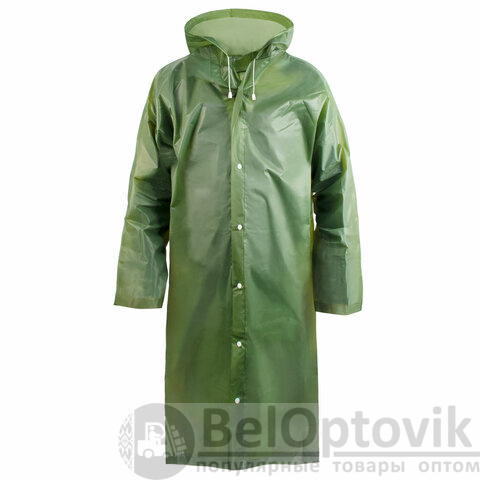 Дождевик-плащ зеленый на кнопках, EVA, многоразовый прочный, универсальный размер, KOMFI, EVA005G