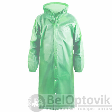 Дождевик-плащ зеленый на кнопках полиэтиленовый, универсальный размер, 118х70 см, KOMFI, DPH003E