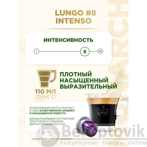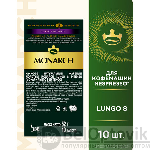 Кофе в капсулах MONARCH "Original" Lungo 8 Intenso для кофемашин Nespresso, 10 порций, 4058903