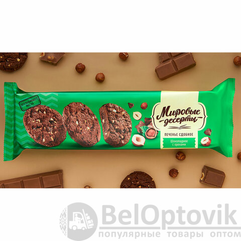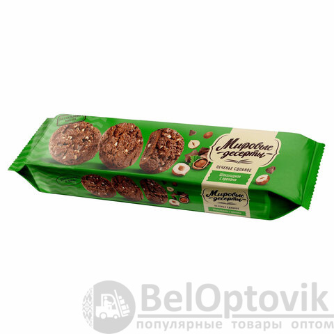 Печенье "Шоколадное с орехом" – это классическое сдобное печенье, приготовленное из шоколадного теста с добавлением фундука и кусочков шоколада. Изготовлено по классическому рецепту в соответствии ГОСТ 24901-201.