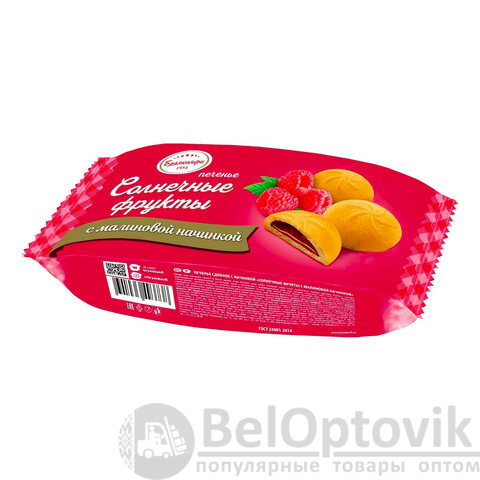 Печенье сдобное БРЯНКОНФИ "Солнечные фрукты" с малиновой начинкой – сладкое и полезное кондитерское изделие. Лакомство мягкое, пористое. Рекомендуется подавать на стол с кофе, чаем, соком, морсом, молочными продуктами.